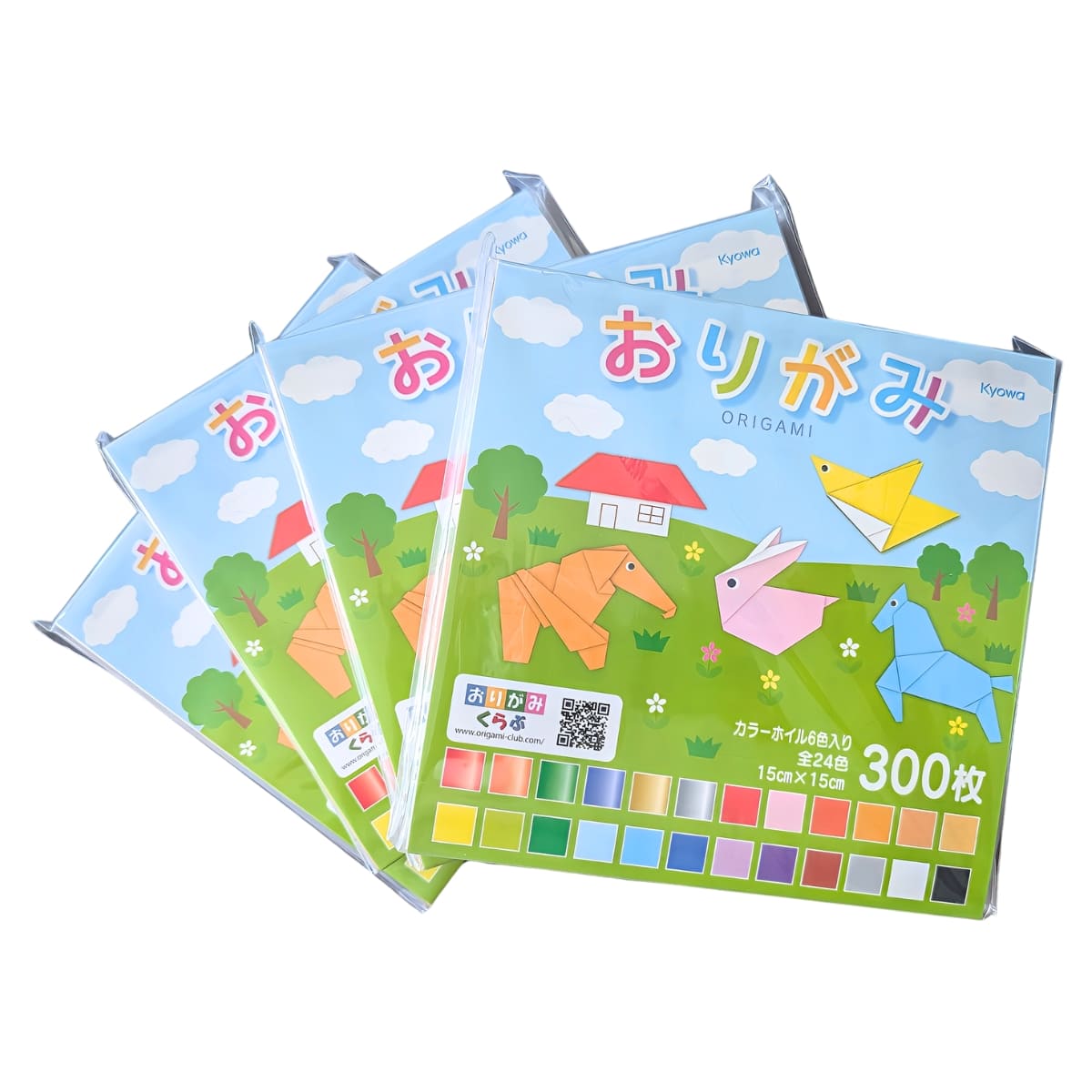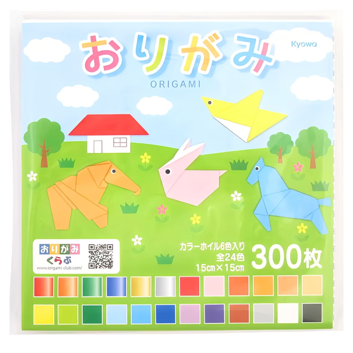 Kyowa(キョーワ)おりがみ 全24色 300枚 x 4 セット カラーホイル 6色入り 1200枚 #13689 サイズ:15×15(cm) 原産国:日本 協和 折り紙 50種類の折り方付き 幼児から 大人まで楽しめる 工作 作品作り