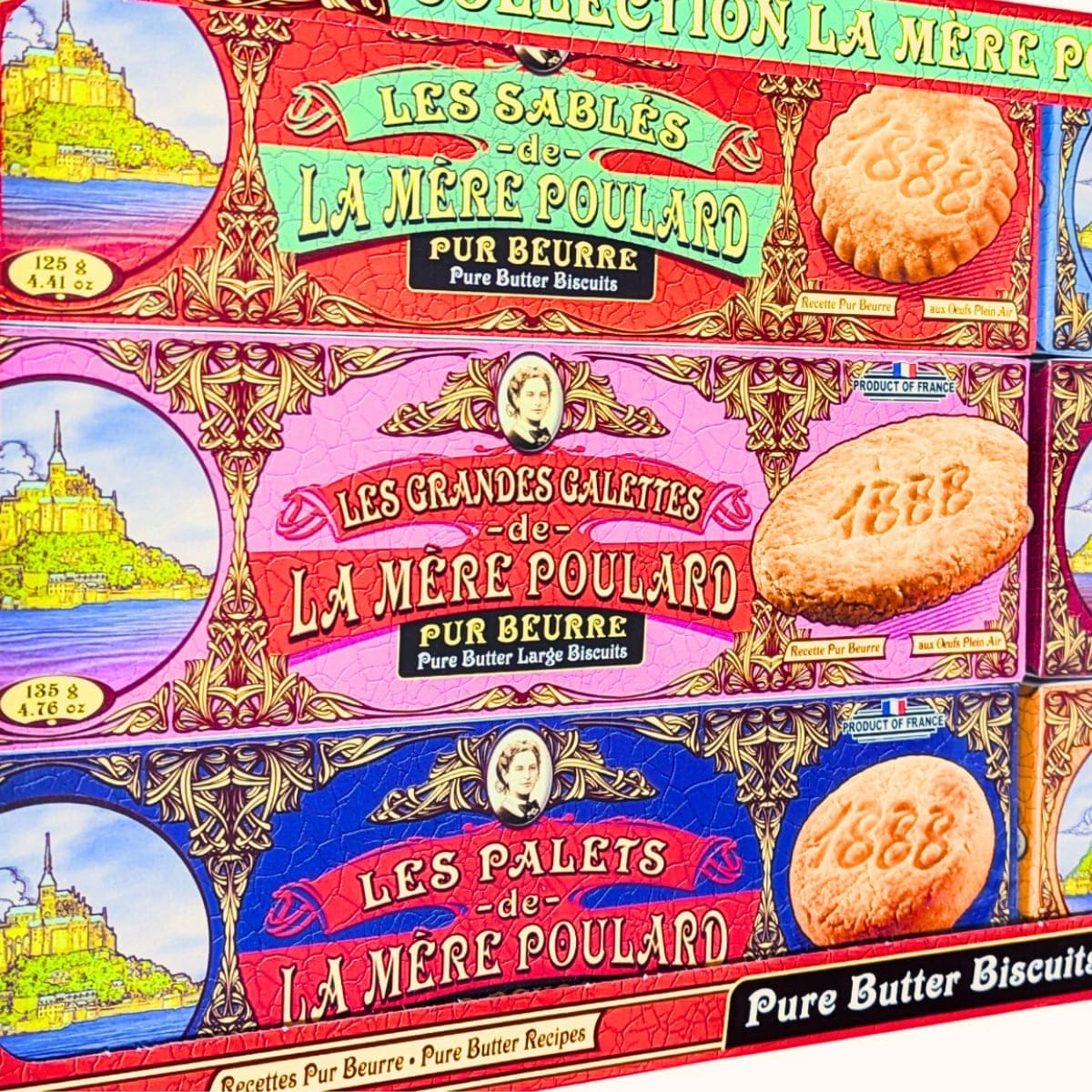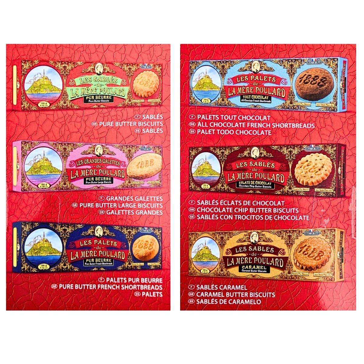 LA MERE POULARD GIFT BOX は、フランス発のクッキーやビスケットのアソートセットです。6種類の味わいが楽しめるギフトボックスになっています。チョコレートショートブレッド、ピュアバタービスケット・チョコチップ、ピュアバターショートブレッドなど、バターの豊かな本格的な焼き菓子の詰め合わせ。