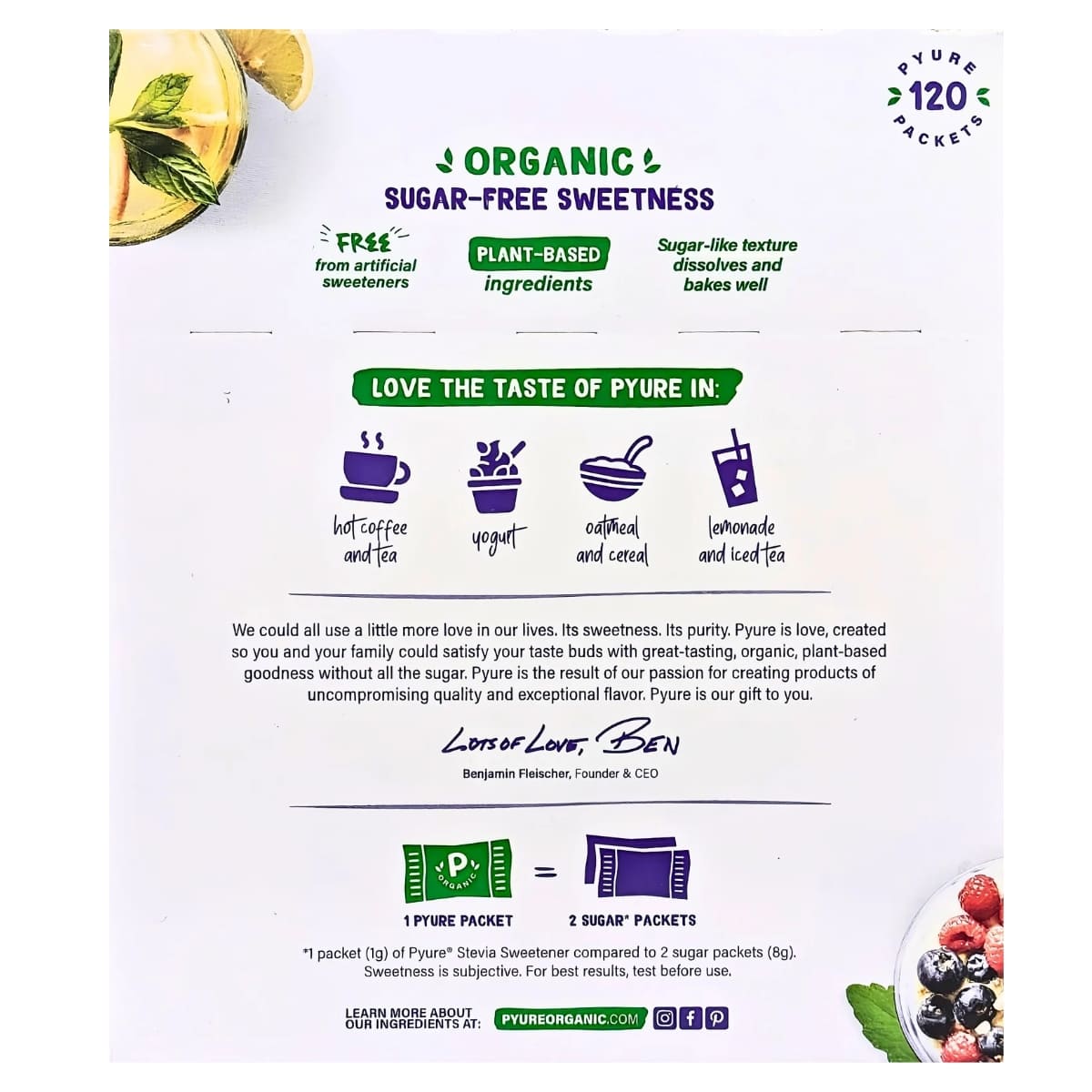 PYURE(ピュア) オーガニック 甘味料 ステビア 120包 砂糖不使用 持ち運びにも便利なパケット